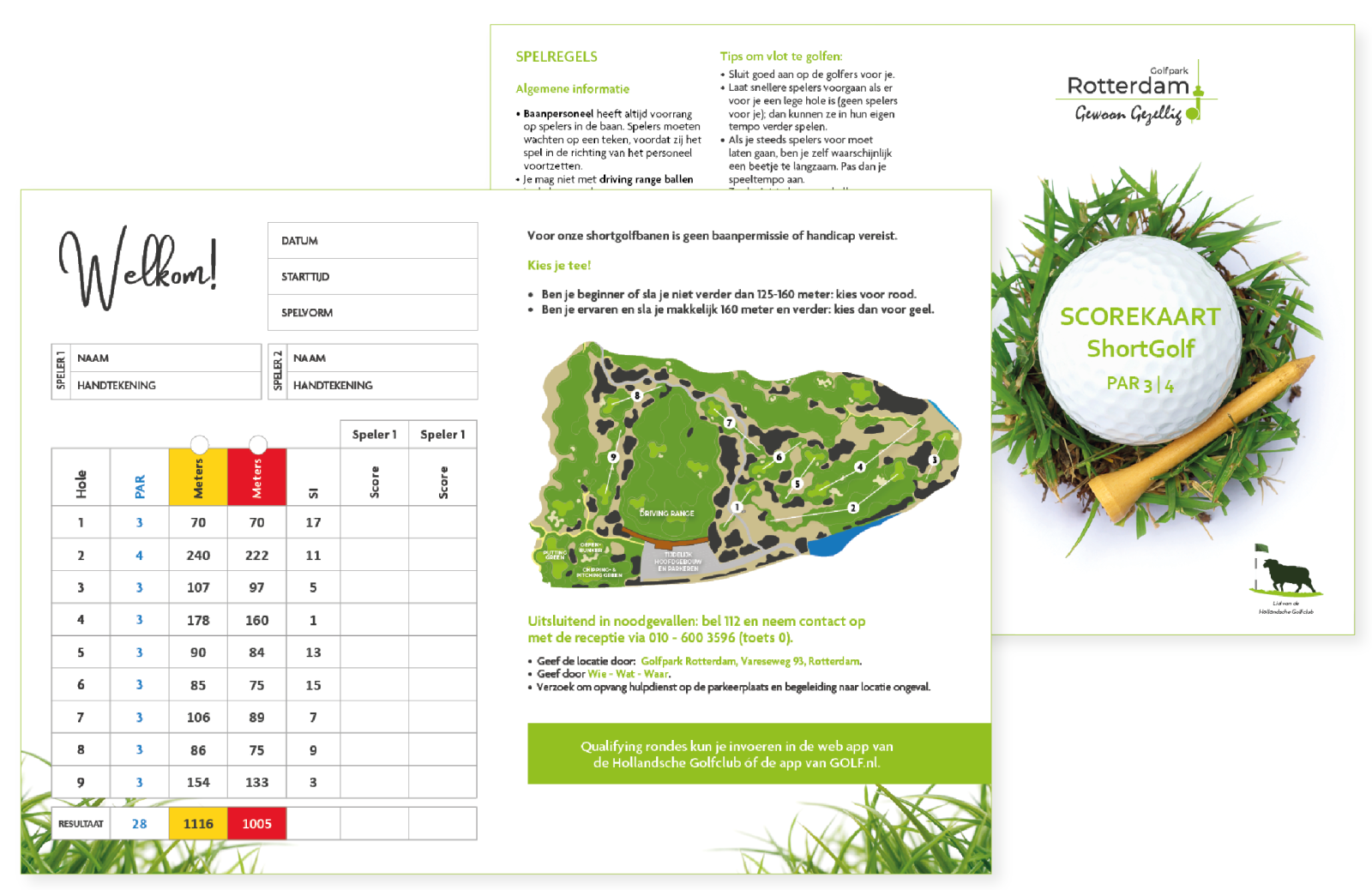 Op al onze golfparken maken wij gebruik van scorekaarten zoals voor Rotterdam hieronder.